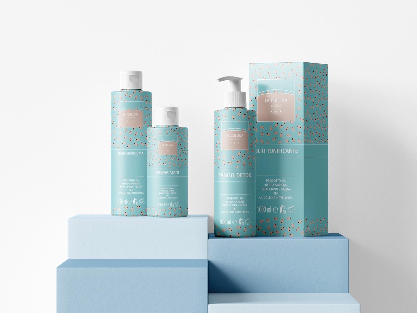 Abbiamo inoltre progettato le insegne, la segnaletica interna e il packaging dei prodotti a marchio La Collina Hotel&Spa.